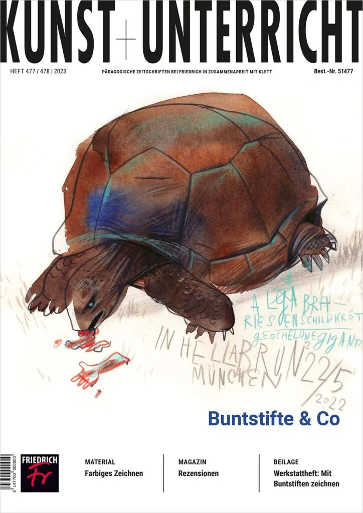 Der Thementeil in dieser Ausgabe nimmt in Theorie und Praxis das farbige Zeichnen mit Buntstiften in den Blick und geht damit verbundenen Potenzialen für das Gestalten im Kunstunterricht nach. In den Unterrichtsbeispielen zeigt sich eine große Vielfalt des Buntstifteinsatzes, der gerade mit Blick auf zeitgenössische Werke viele Impulse bietet, mit Buntstiften zu gestalten. Der MATERIAL-Teil regt anhand von zehn künstlerischen Positionen in Produktion und Rezeption zu einer intensiven Auseinandersetzung mit Buntstiften an. Als Beilage finden Sie in dieser Ausgabe das Werkstattheft „ZEICHNEN & MALEN Schritt für Schritt“. Damit können Schüler:innen selbstständig an ihren Fertigkeiten arbeiten. Dieses Workbook kann gut zur Differenzierung im Kunstunterricht eingesetzt werden.